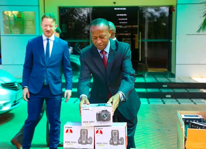Abdallah Komesha, the Director of the Investigations Bureau, received the equipment on behalf of the Director of DCI.