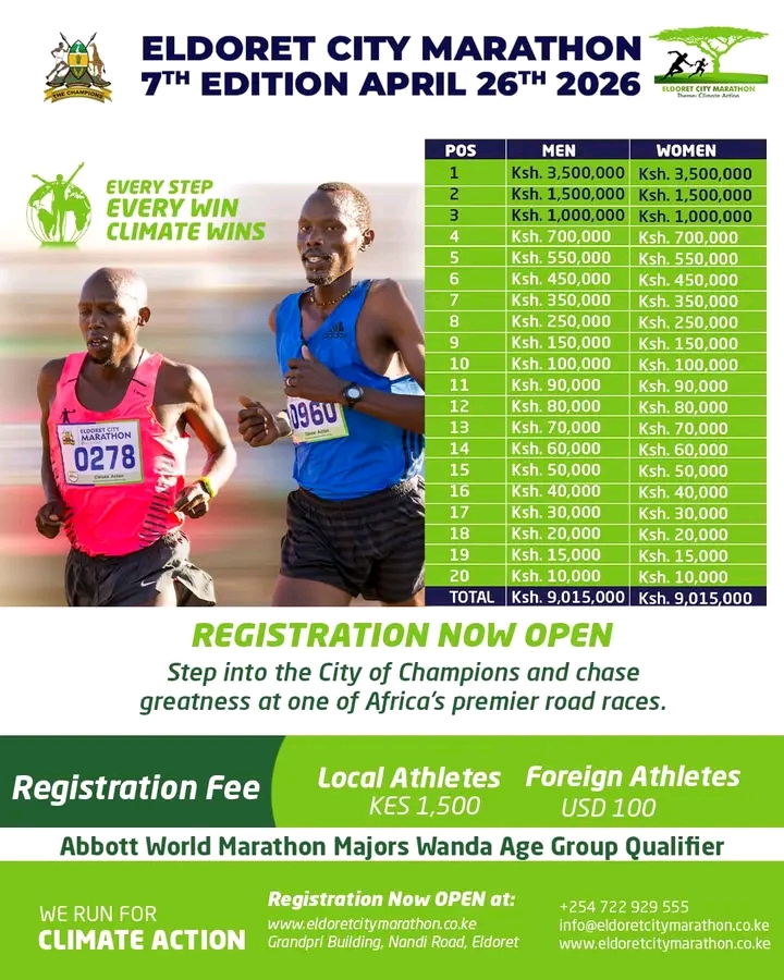 The 7th edition is of the Eldoret City Marathon is scheduled for April 26, 2026.