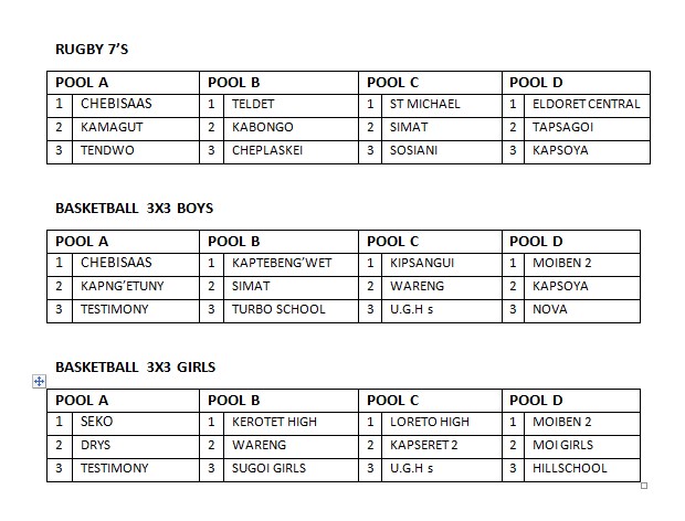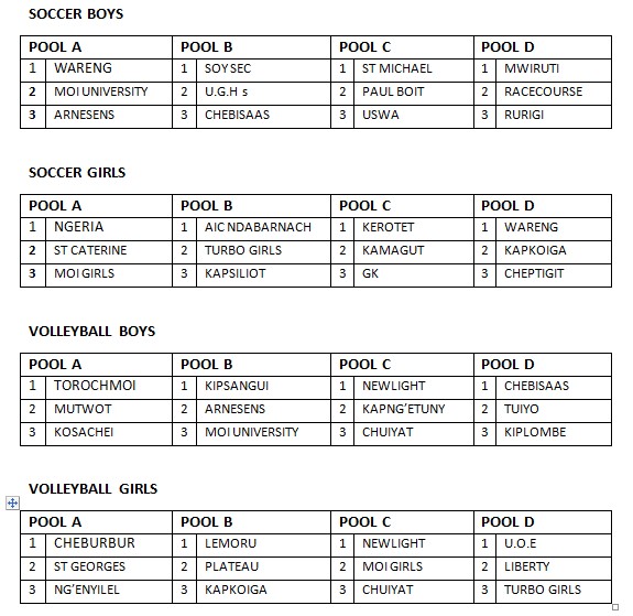 Here’s the full pooling for the Uasin Gishu Secondary School games;