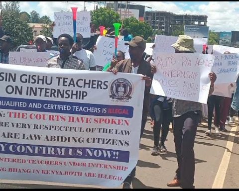 The teachers, led by the Kenya Union of Post Primary Teachers (KUPPET) Nandi South Executive Secretary Paul Rotich, also matched to the Teachers Service Commission (TSC) seeking transfer from Maraba Secondary School over the incident.